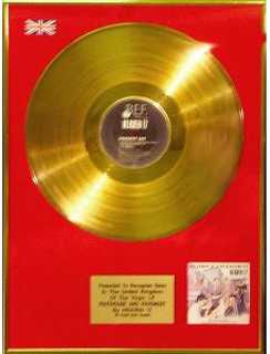 PENTHOUSE AND PAVEMENT The Gold Disc is professionally Mounted on a red background with a small inlay to the side. It is Framed in a quality gold aluminium frame Size: Approximately 14" x 19" (35cms x 48cms)and glazed with glass. The presentation is completed with an engraved metallic plaque, which reads:-