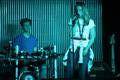 | Glenn doing some non-electronic riffs. One of the rare pictures where the three additional musicians (from left to right) Asa Bennett,