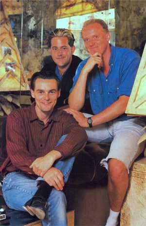 "We spent about a year writing and recording the backing tracks in our own studio, so that cost virtually nothing except for a few pieces of equipment. Then we did the final tracks and the mixing at Red Bus and Air, with Phillip Legge and Graham Bonnet engineering, using the new Massenberg automated mixing system." "It's a really good intuitive mixing system, but like all new technology it makes life more difficult. It turned out better, but it was a longer process. You can trim a tiny fraction, like 0.5dB, on the computer, and because you see the sliders moving on the desk you think you can hear the difference", adds Glenn. "It's like playing a musical instrument; because the mix is actually going through the faders, not some abstract LED bar graph, it's like having a team of people carrying out your every command. So it takes a while to do, but it makes for a much more organic sound." In contrast to the 48-plus tracks used on previous albums, Teddy Bear, Duke and Psycho was consciously restricted to 24 track, plus MIDI equipment running live. "Yu can get a bit carried away sometimes", admits Martyn. "To tell the truth, you never need more than 16 tracks if you're willing to bounce down. We were using vocal slaves down to stereo tracks in some cases, but in the end there wer just the 24 tracks to mix, and that makes life easier." Another happy experience was working with the Passport Master Tracks Pro sequencing software runing on the Apple Macintosh. "It performed immaculately. It didn't crash once. We were using a Roland SBX80 SMPTE synchroniser, and Master Tracks sometimes lost its place when we rewound the tape, but once you restart the tape it sorts itself out. In future well be using it a lot more." |