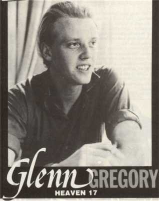 Nira: Where did you first meet Martyn and Ian, and what did you think of Martyn's green fur coat? Glenn: We met years ago, when I was 14 or 15, in some strange drama workshop-cumyouthclub hangout. We used to have lots of bands then - every other week - which we were involved in. We never performed anywhere, we couldn't play anyway. Martyn used to wear this green fur jacket which was too small for him, it came right up to his waist! We all liked it though, in fact, I wish he'd wear it again. Nira: What's your favourite Heaven 17 record, and why? Glenn: 'Lady Ice And Mr Hicks'. I like the mood of it - it's almost cocktail music, out mainly because it's different to anything else we've done. I think the best single is 'Let Me Go', even though it didn't do as well as any of the others. Nira: Do you ever think you'll play a live gig in Sheffield? Glenn: Yes, if we ever play live concerts, it could possibly be the first one we do. We haven't got any plans to play live as yet, but we probably will in a couple of years. Nira: Is the girl on the front of your single `Temptation' your wife Sarah? Glenn: No, it's not, and this is probably a good time to set the record straight. We don't know her name, or who she is or anything. We were being filmed by an Italian crew for a video, and they brought these girls along. Martyn was snapping away with his camera and took a picture of her. When we were looking for a cover, we found it, but we've never been able to contact her. If she reads this, maybe she could ring Virgin Records. I do remember she was part-Polish. Nira: Do you remember me? I spoke to you in Sheffield (at the bottom of Chapel Walk). Glenn: Yes I can. I was with my mum and Sarah, and two girls came up and asked me for my autograph. You must have been one of them - I bet that's surprised you!